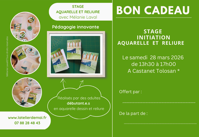 Bon cadeau stage d'Aquarelle et de reliure