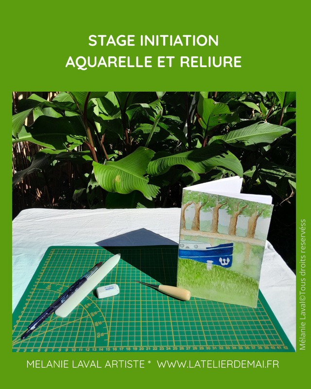 Un stage de découverte de l'aquarelle et de la reliure.